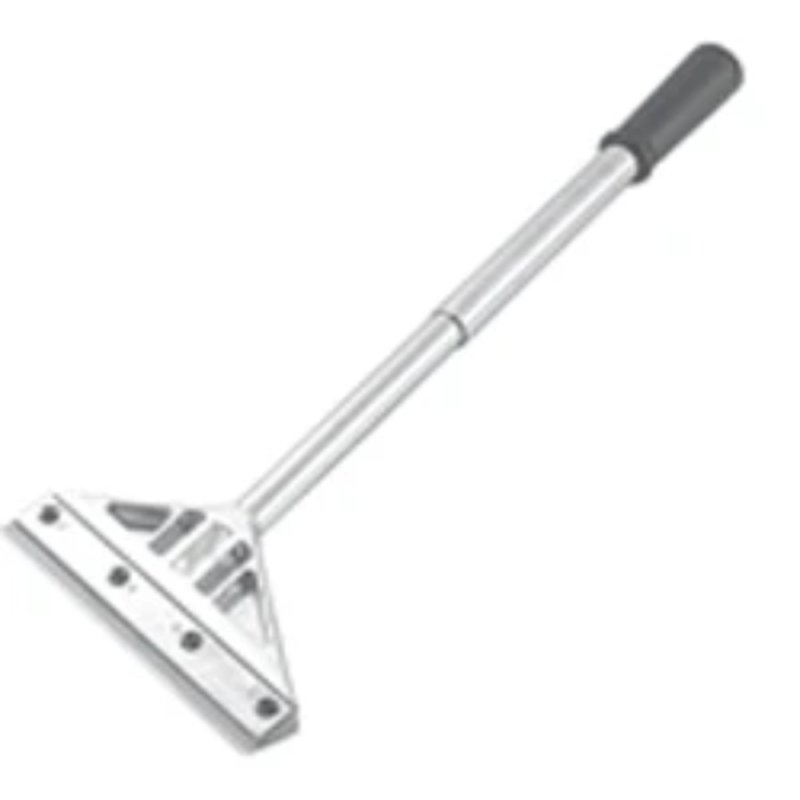 This scraper uses a 8" wide heavy-duty replaceable blades to take on tough removal jobs. The telescoping handle uses a twist-lock mechanism to easily adjust from 19" to 29" in length. This durable model features a steel-reinforced scraper head, and the blade clamp is attached to the head with four case hardened slotted head screws. The 375S is perfect for scraping work, but not recommended to be used for heavy-duty prying tool. Comes with one heavy-duty .037" thick scraper blade, and a blade cover for safe storage.