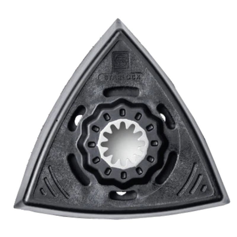 This 3" Sanding Pad is triangular shaped to allow working completely into corners. Sanding Pad has a molded plastic back and a "hook" face to attach to the "loop" back of the sandpaper and six dust collection holes for dust free sanding. For use with Dust Collection Sandpaper. Sold 2 per pack. Sandpaper for the pads is available in a wide range of grits from course (36 grit) to fine (240 grit). The Starlock mount offers fast, secure, tool-less accessory changes "” in under 3 seconds. Starlock Accessories will fit the Fein MultiTalent, MultiMaster, SuperCut, Bosch, Makita, Rigid, Milwaukee, and others.