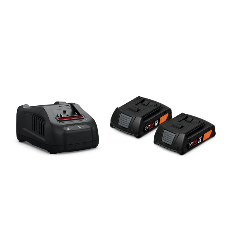 This 18V 2Ah AMPShare Starter Set includes two 2 Amp Hour batteries and a fast charger that charges to 80% in 15 minutes..